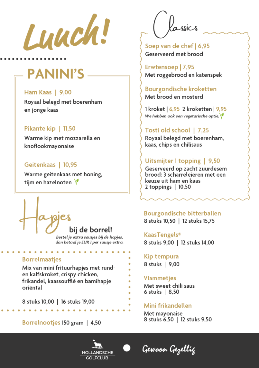 Je bent meer dan welkom!Of je nu toevallig langs fietst, komt om te golfen of om gewoon even weg te zijn van ‘de drukte van alledag’ ... in onze Brasserie kun je dagelijks genieten van heerlijke koffie, een lekker wijntje en een vers bereide maaltijd in een sfeer van ‘gewone gezelligheid’.